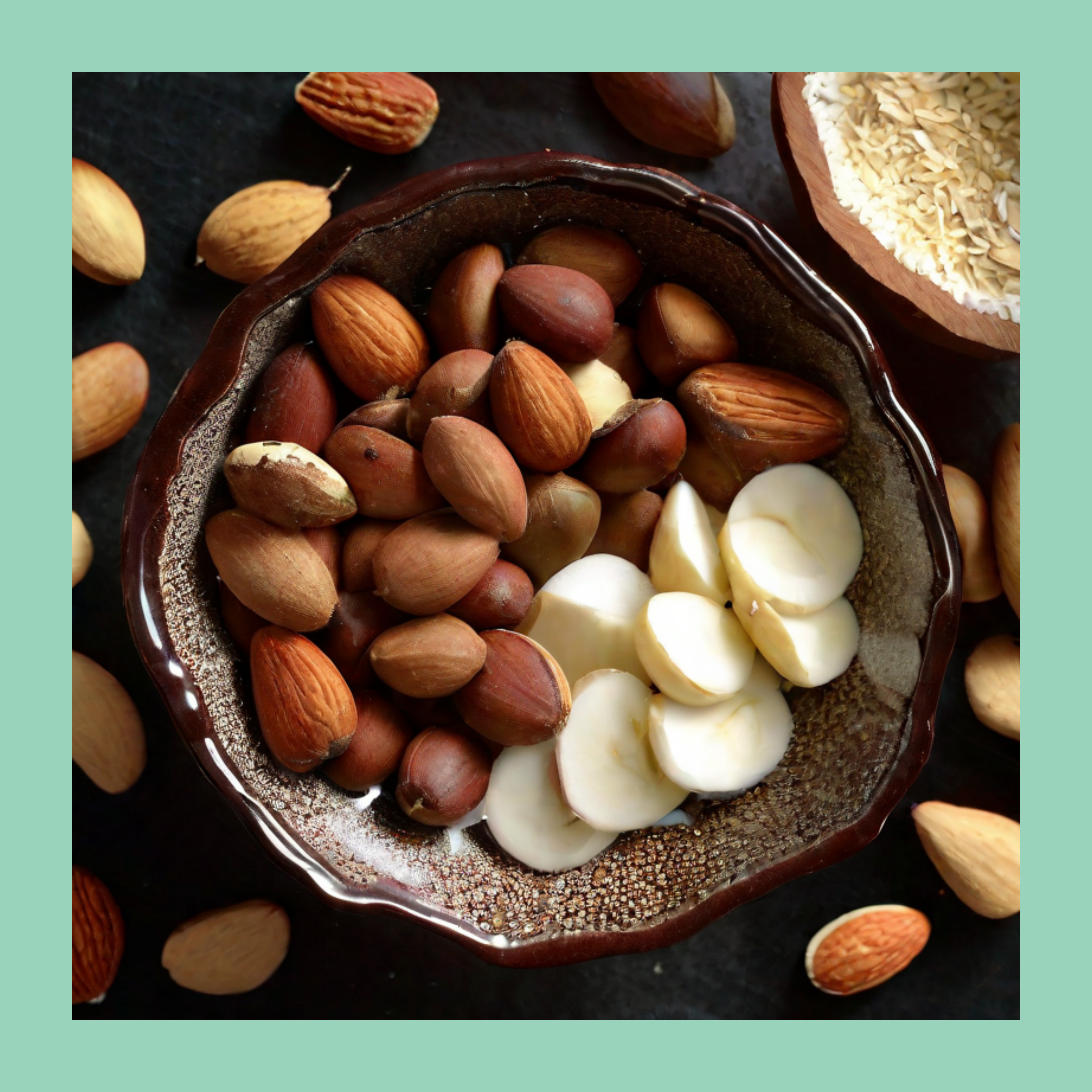 1.프리바이오틱스로 작용: 아몬드에 풍부한 식이섬유와 불용성 섬유소는 장내 미생물에 균형을 조절하며, 장 건강을 증진시키는 프리바이오틱스 효능을 가지고 있습니다.